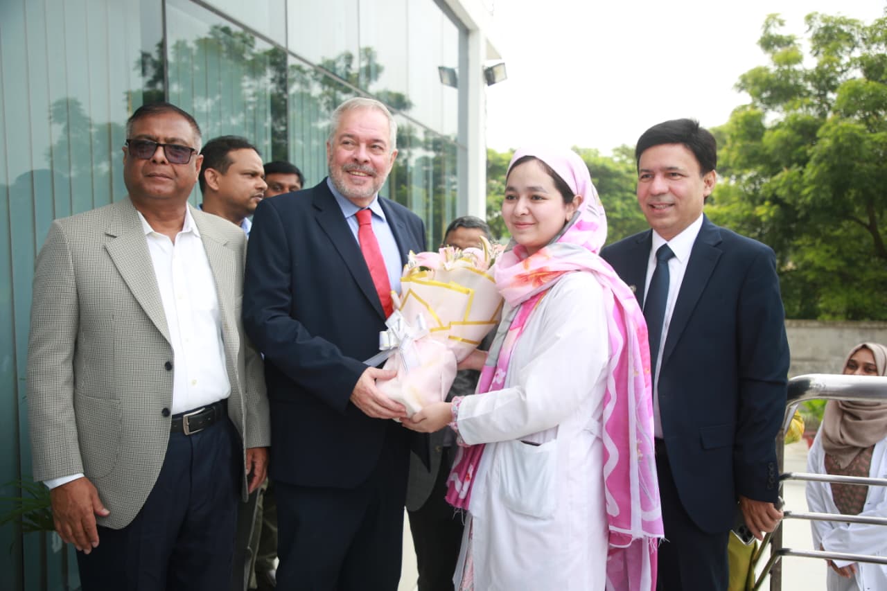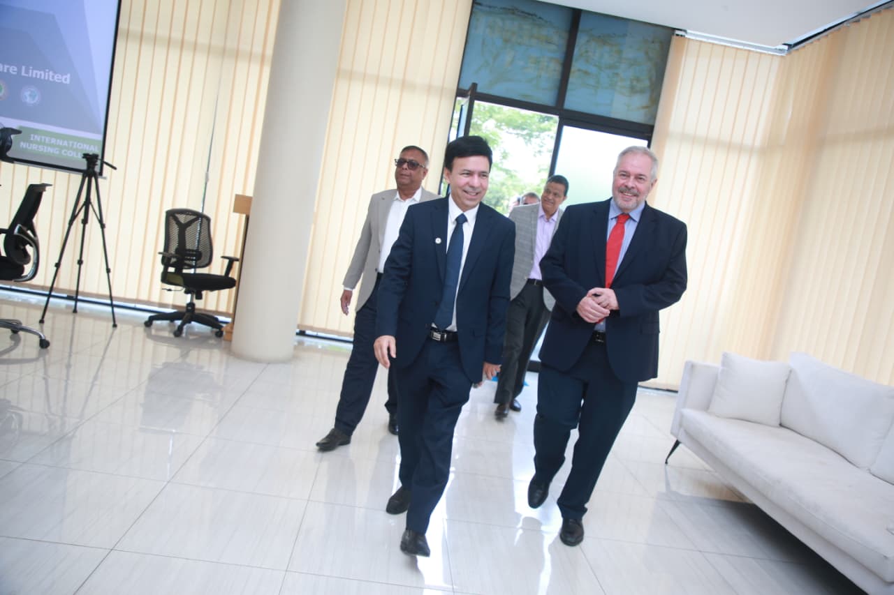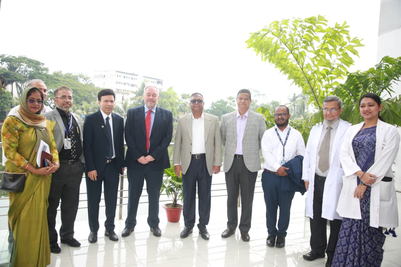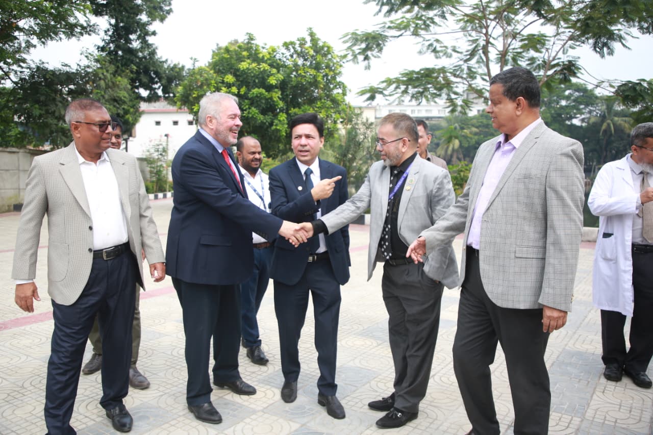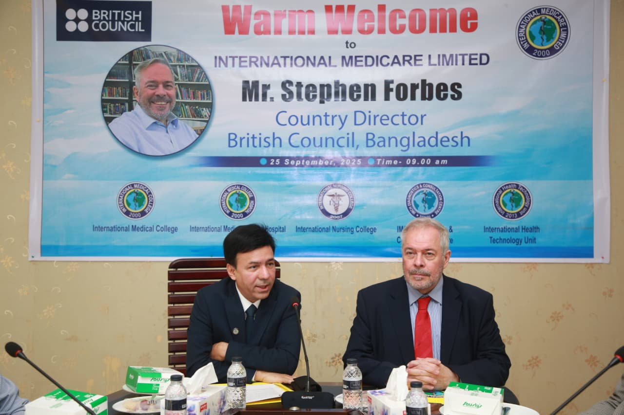 Mr. Stephen Forbes, Country Director of the British Council, Bangladesh, visited the International Medical College, International Nursing College and International Medical College Hospital today. A discussion meeting was held at this time. The meeting was presided over by Mr. M. A. Mubin Khan, Managing Director, IML and Chairman Governing Body, IMC. Also present at the meeting were all the heads of IML institutions. The meeting discussed the collaboration between the British Council and the International Medical College, International Nursing College & International Medical College Hospital regarding education system, health services, faculty development, research and e-resources.